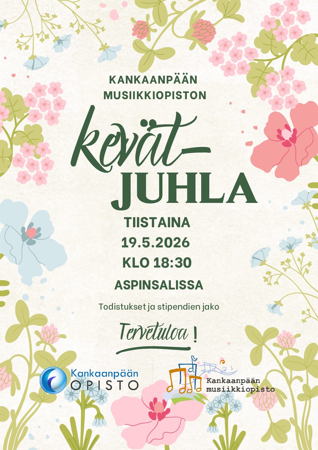 Tervetuloa kokeilemaan erilaisia soittimia ja tutustu samalla opettajiimme keskiviikkona 25.3.2026 klo 17.30-19.00! Saat myös tietoa musiikin opiskelusta meillä ja aloita uusi mahtava harrastus!… Lue loppuun