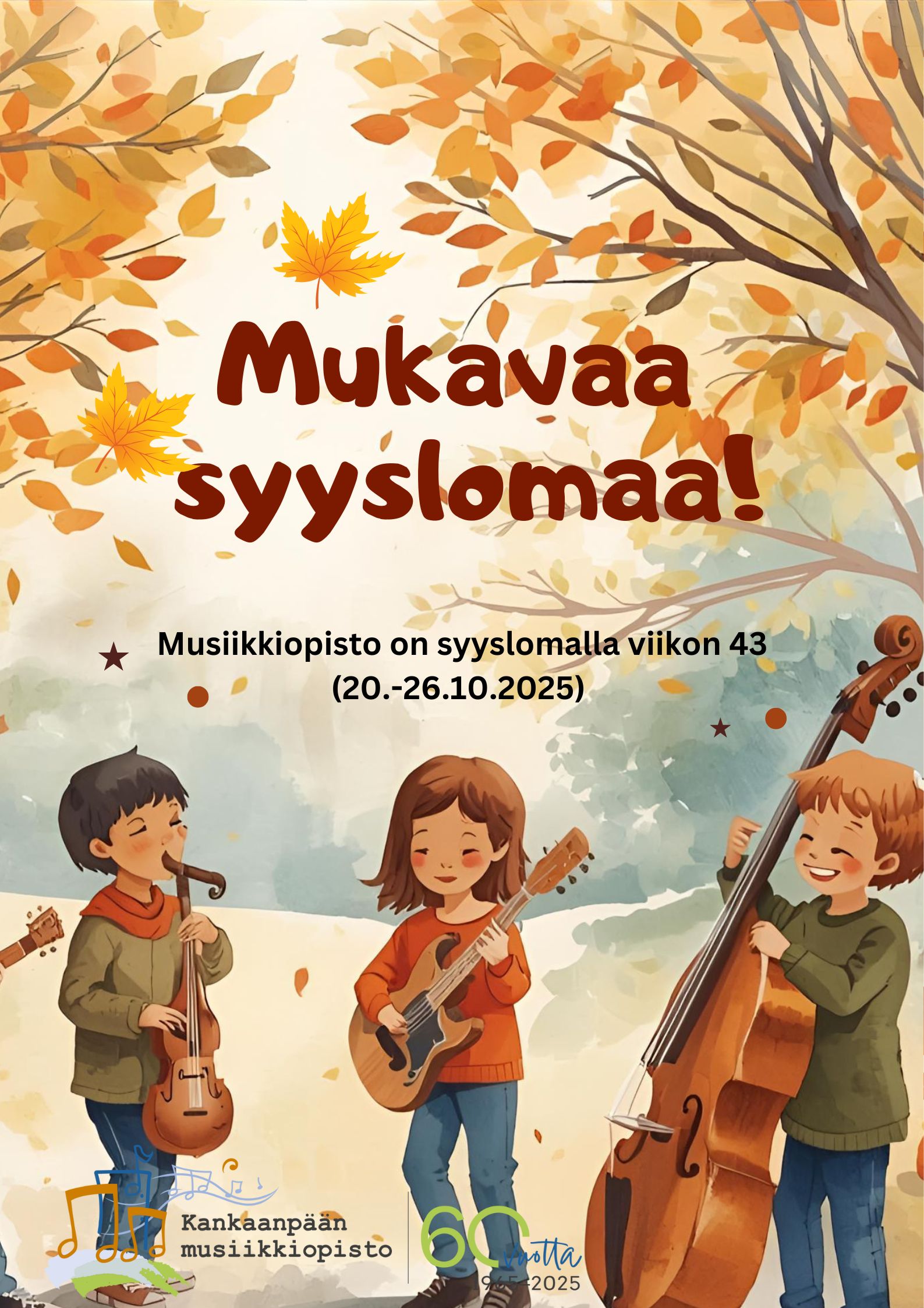 Musiikkiopisto lomailee 20.-26.10.2025. Toivotamme mukavaa lomaviikkoa kaikille!… Lue loppuun